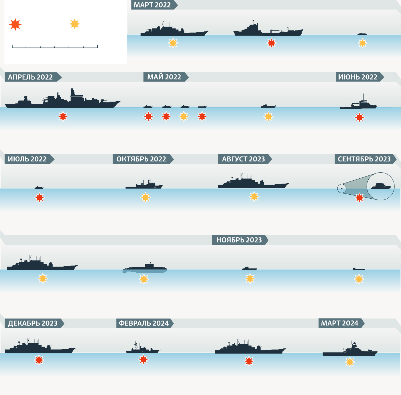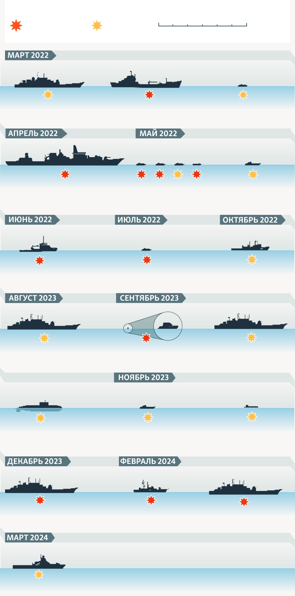 Около двух десятков российских военных кораблей были уничтожены или повреждены атаками Украины с начала полномасштабного вторжения РФ.
