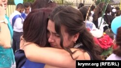 Еле сдерживая слезы, ребята спели свою финальную прощальную песню и запустили в небо десятки шаров цвета национального крымскотатарского флага. И вот он – самый волнительный момент для выпускников и их родителей – прозвучал последний звонок, который сообщил ребятам, что детство окончилось и начинается путь во взрослую жизнь. 66 выпускников крымскотатарской школы уже в субботу, 31 мая, получат свои аттестаты, однако будут они только российскими.