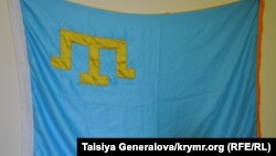 Флаг крымских татар представляет собой полотно небесного цвета с изображенным на нем гербом рода хана Гираев, который символизирует гордость и объединение крымскотатарского народа.