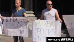 «ПриватБанк» заморозил два моих депозита еще в апреле, – рассказал участник акции Владимир, ранее проживавший в Керчи. – У меня нет даже минимальных средств для существования. Я уже десятки раз обращался к консультантам, но вопрос не сдвигается с мертвой точки. А в последний раз оператор вообще посоветовал мне ехать в Крым и получать свои деньги в Фонде гарантирования вкладов».