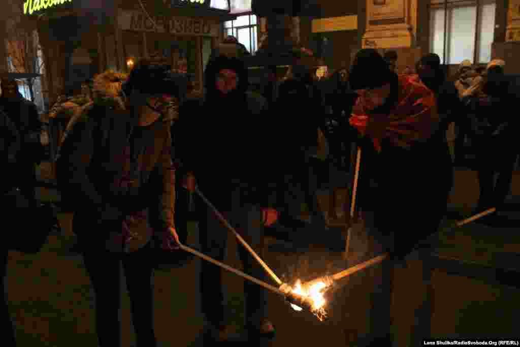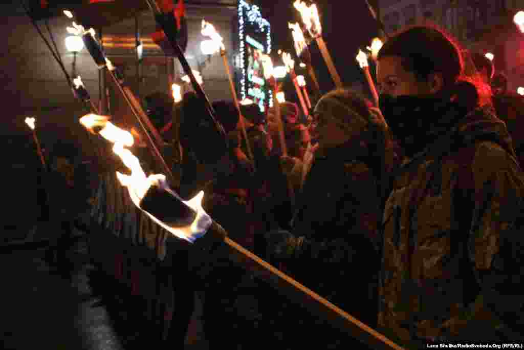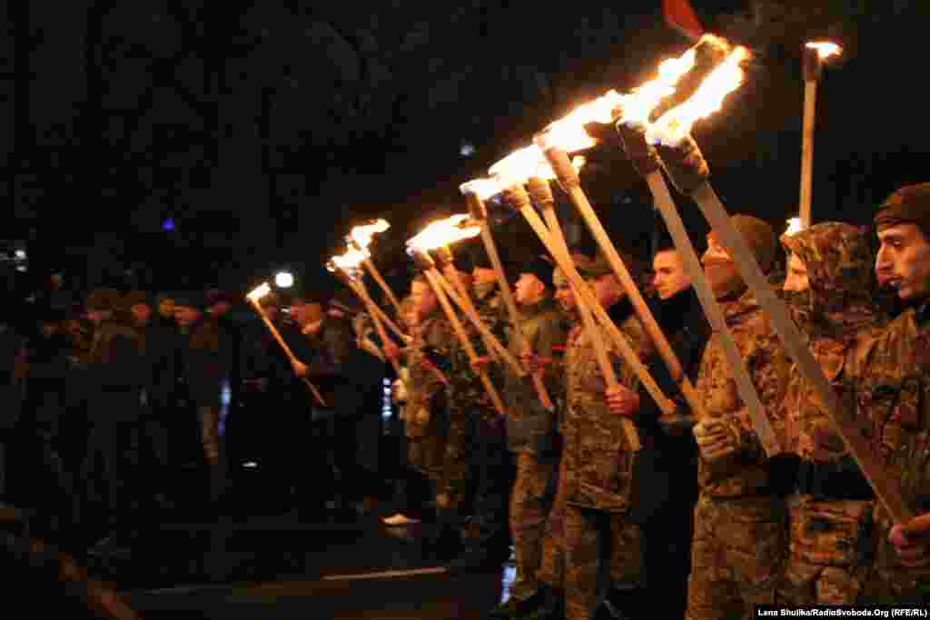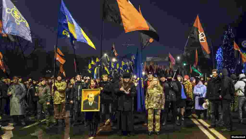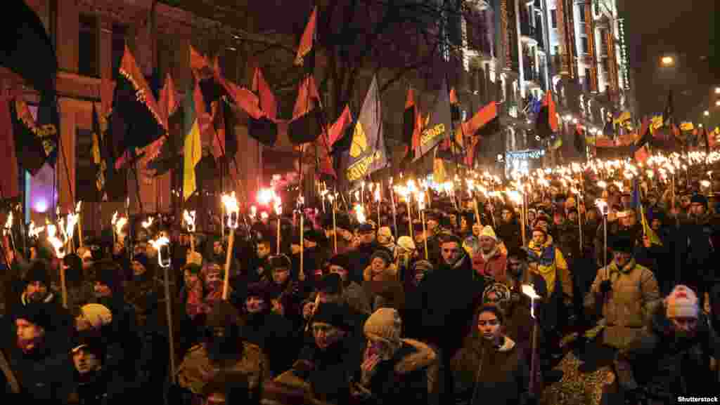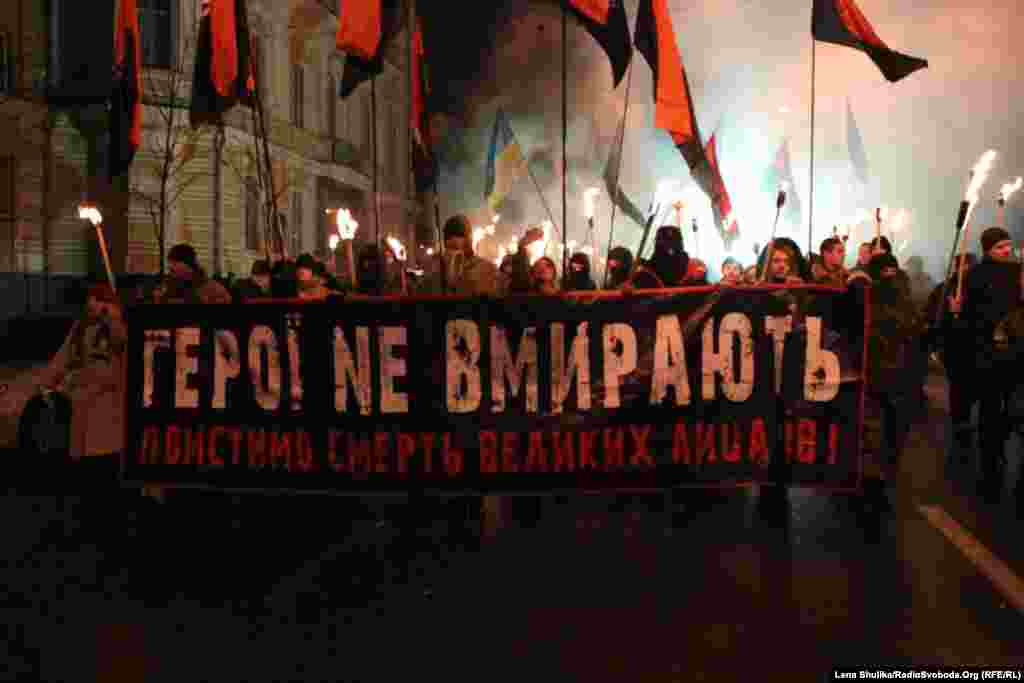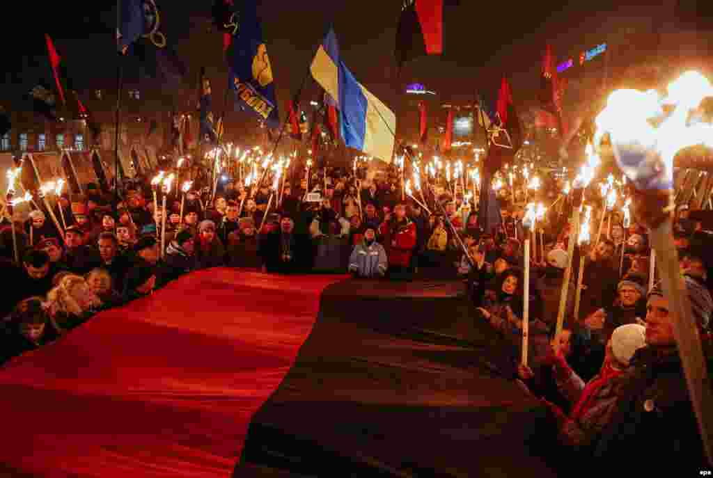 Ukraine -- Torchlight procession in honor of Bandera, 1Jan2015