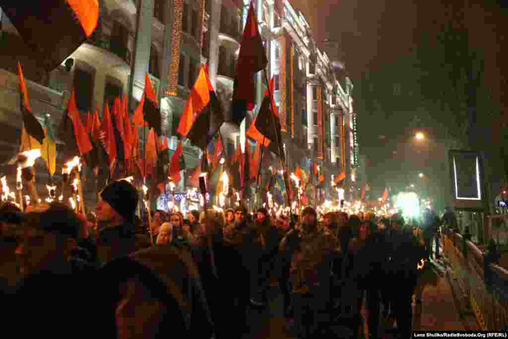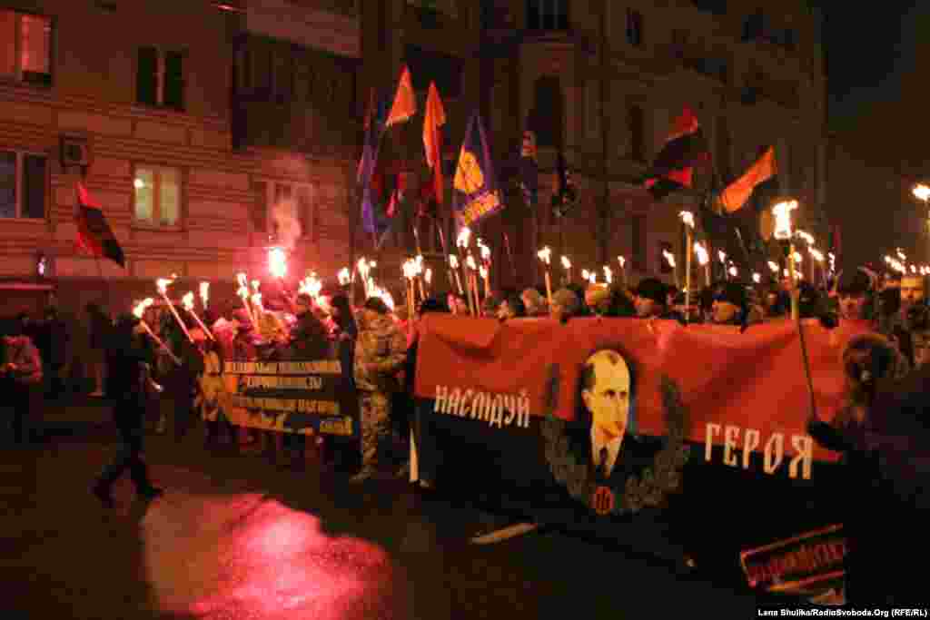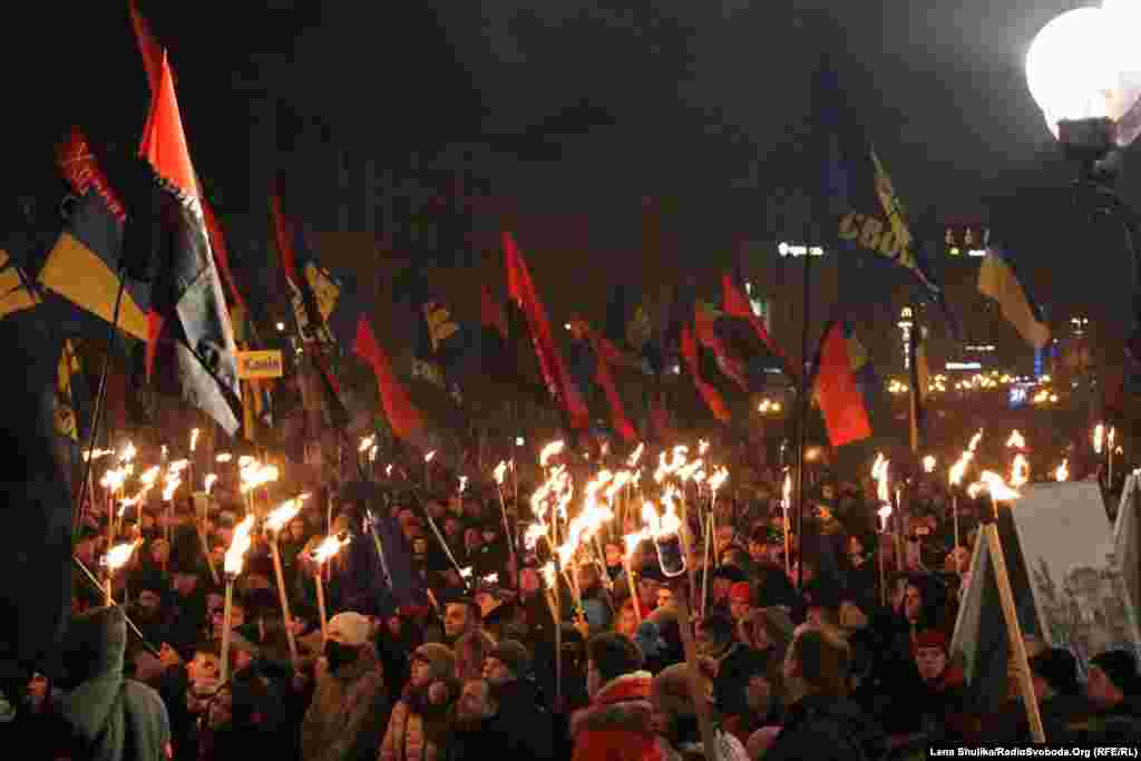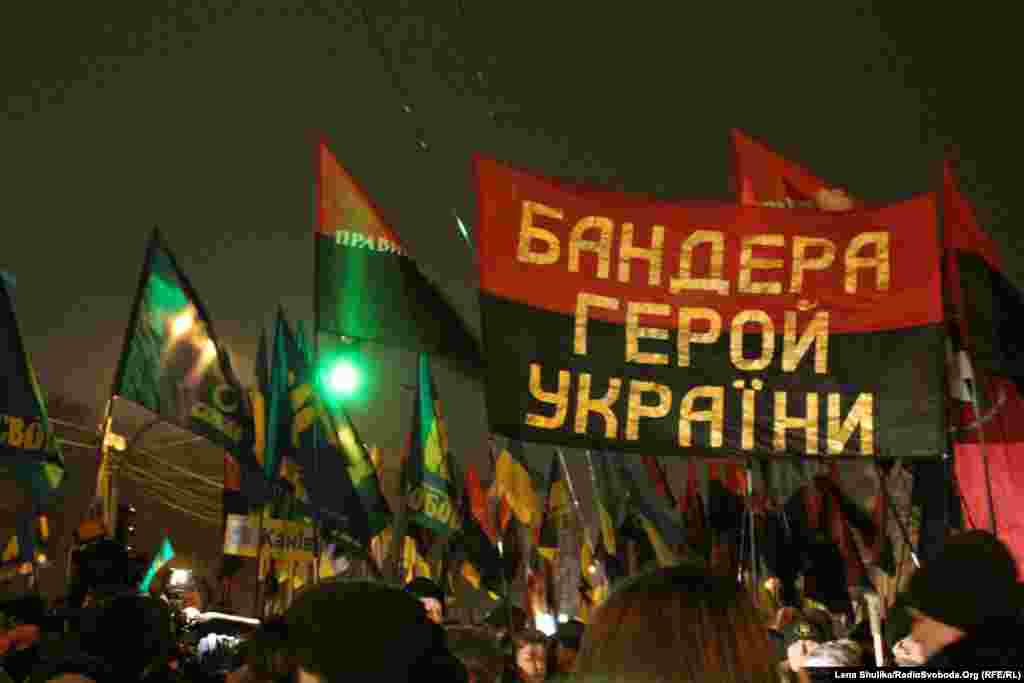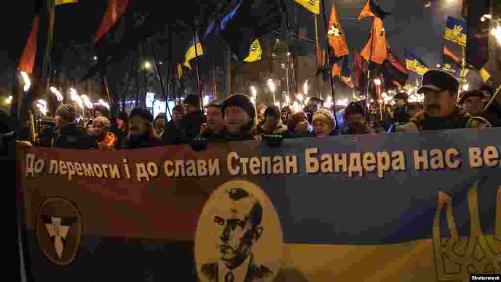 У Києві вшанували 106-у річницю від дня народження провідника ОУН Степана Бандери. Активісти «Правого сектору», ВО «Свобода» та КУН пройшли смолоскиповим маршем від парку імені Тараса Шеченка до майдану Незалежності. В акції взяли участь кілька тисяч людей.