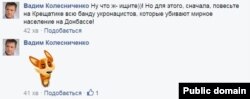 В комментарии Радио Свобода Вадим Колесниченко назвал возбужденное против него уголовное дело «пиар-акцией», которая имеет целью «запугивание и шантаж». «Лично у меня то, что я прочитал в интернете об объявлении меня в розыск, безусловно, кроме смеха ничего не вызывает», – отметил бывший парламентарий. Колесниченко также отметил, что не знает, что именно ему инкриминируют. «Но однозначно могу сказать, что с точки зрения норм Конституции и действующего законодательства нет ни одного доказательства моей якобы преступной деятельности», – добавил он.