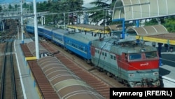 Пока же они особо не спешат. А слух тех, кто в эти майские дни все-таки решился воспользоваться услугами РЖД и КЖД (Крымской железной дороги), один раз в день ласкает старое, трехлетней давности, «сердечное» детище госпожи Ковитиди. Причем точно по расписанию в 16:15, если, конечно же, на Керченской переправе особо не штормит. Тогда как раз локомотив с логотипом РЖД (Российской железной дороги) каждый раз притягивает из Керчи пять вагонов единственного дальнего поезда №561 сообщением «Москва-Симферополь» (на снимке). К слову, те же полупустые вагоны, которые перед этим каждое утро в 07:00 под знаменитое «Прощание славянки» туда и оттягивает.
