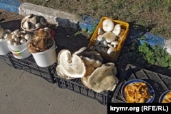 Вместо фруктов и овощей на обочинах нынче в тренде грибы. Белые идут по 500 рублей килограмм (185 гривен), маслята, шампиньоны, лисички – по 200-300 рублей за кило (85 – 115 гривен)