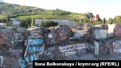В маленьком поселке Утес на Южном берегу Крыма проживает до двухсот человек. Кроме моря, возле которого расположились многочисленные курортные заведения, здесь находится дворец княгини Гагариной у самого подножия мыса Плака. Я искала в Утесе заполненные туристами пляжи, которых не оказалось на Западном берегу, но не нашла их и тут. Однако в одном из магазинов поселка меня тронула экспозиция детских рисунков. Рисунков без туристов, но с морем, самолетами и танком. А на скалах мыса Плака я заметила уже старую надпись, сделанную желтой и синей краской: «Донецк. Люба. 20.08».