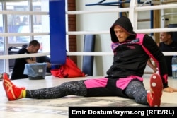 В это время Александр Усик разминается перед рингом: сначала он делает растяжку, затем висит на турнике. Несколько молодых людей, пользуясь случаем, просят крымчанина сфотографироваться с ними. Открытые тренировки Усика перед ответственным поединком уже стали доброй традицией.