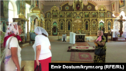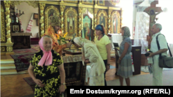 Женщины обнялись, переговорили о чем-то, а затем отправились в храм. Здесь был запланирован праздничный молебен по случаю 24-й годовщины провозглашения независимости Украины.