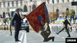 Президент Украины Петр Порошенко в День Независимости дважды выступал публично. Но, ни в торжественной речи в Киеве, ни в публичной части визита в Берлин о Крыме не упоминалось. Сквозной темой выступлений украинского лидера были Минские договоренности. Порошенко и Ангела Меркель с Франсуа Олландом признали: договоренности эти Россия не выполняет. И заставить Кремль это делать рычагов нет. Однако все трое в один голос настаивают на выполнении условий документа Украиной. Следует напомнить, что аннексия Крыма Российской Федерацией не является предметом Минска-2.