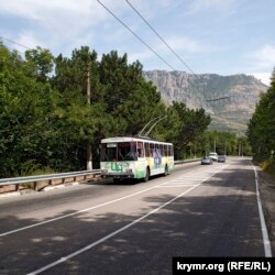 Конечная симферопольского городского троллейбуса Марьино на трассе Симферополь – Ялта. Отсюда все, кто не смог купить билет до Ялты или Алушты, пытаются уехать на проходящем троллейбусе, автобусе или попутке. Народу нет, хотя троллейбусы ходят нечасто. И даже стоят несколько машин, по виду такси – ждут клиентов.