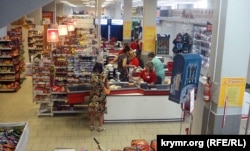 Овощи здесь явно украинские – и по словам продавцов, и по простой логике. Крупные торговые сети договора о поставке продуктов с мелкими производителями не заключают – ведь нужна гарантированная, бесперебойная да еще и круглогодичная доставка продукции в сеть. А откуда в Крыму крупные поставщики овощей и фруктов? Когда Крым в зоне рискованного земледелия и заморозки каждые два года убивают урожай фруктов, а картошка тут растет только на крестьянских подворьях? Ну, разве что лук местные корейцы на севере Крыма выращивали в промышленных масштабах. Но теперь, когда воды в Северо-Крымском канале нет, и корейцы не помогут.