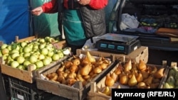 Яблоки на рынке нынче исключительно крымские, благо, урожайный год. Обычно значительная часть яблок привозилась с материковой Украины.