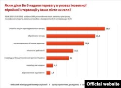 Почти 29% украинцев готовы участвовать в акциях гражданского протеста в случае иностранной вооруженной интервенции в их населенном пункте. Еще 24% готовы оказать вооруженное сопротивление, если в родной город или село вторгнется оккупант. Таковы данные социологического опроса, проведенного Киевским международным институтом социологии при поддержке Центра стратегических исследований и Агентства ненасильственных решений. Однако у жителей оккупированных территорий другое мнение: гражданское сопротивление вооруженному интервенту невозможно.