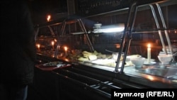 А это отдельный сюжет. То, что в ресторанах Симферополя поневоле ужинают при свечах, экзотичным не выглядит, романтика как-никак, хоть и вынужденная. А вот мистически освещенный фаст-фуд – это уже некий сюрреализм. Причем все остальное выглядит как и полагается в урбанистическом заведении. Столовая «У мамы».