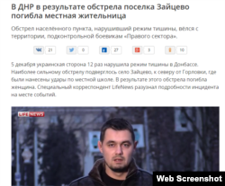 Пятого декабря в российских СМИ появились сюжеты и новости о гибели женщины в Донецкой области в результате обстрелов. Тогда российский канал LifeNews сообщил, что женщина погибла в поселке Зайцево, что к северу от Горловки, из-за осколочного ранения. Канал продемонстрировал и якобы место трагедии.