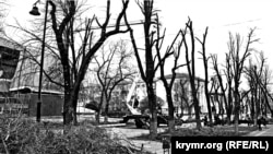 На улице Горького в Симферополе снова идет тотальное уничтожение деревьев. Уже сбился, какое по счету за мою не такую уж и долгую жизнь. Теперь это называется «омолаживающей обрезкой». Звучит так же искренне, как и другая популярная ныне формулировка: «дружеская помощь братскому народу». Как вы понимаете, после такой «помощи», насильно оказанной небольшой соседней стране, не остается ни братских чувств, ни, зачастую, самого народа.