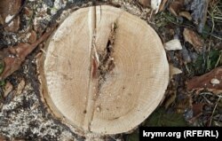 Журналисты выяснили, что деревья эти были посажены в 1940 году, перед войной, какой-то женщиной. Значит, на момент гибели им было немногим более 70 лет, для этих пород деревьев – возраст расцвета. Я, чтобы проверить информацию, попросил у знакомого, снимавшего летом 2011 года хронику гибели улицы Горького, поделиться фотографиями. Вот фотография пня спиленного тогда каштана. Я насчитал более 65 четких годовых колец только до треснувшей при спиле сердцевины. Так что все сходится, сведения верные.