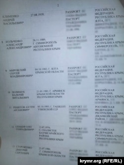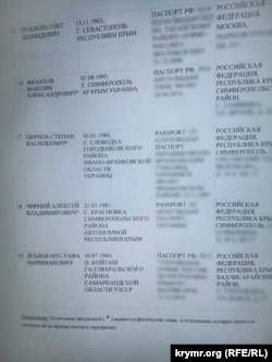 В документе сообщается, что в списке крымчан звездочкой помечены те, «в отношении кого есть сведения об их причастности к терроризму».