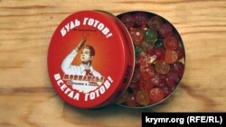 Монпансье «Будь готов! Всегда готов!». Тут прекрасно все – даже сами леденцы. Действительно, вкусные и яркие, сам попробовал. И недорого, 35 рублей (десять с небольшим гривен).