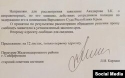 Акадыров подал несколько жалоб в российские ведомства – Следственный комитет, МВД, Администрацию президента России, а также Следственный комитет Крыма и омбудсмену Крыма