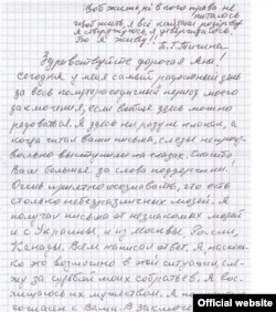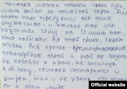 Осужденный на 10 лет колонии по делу так называемых «крымских террористов» Александр Кольченко пишет российскому активисту – фигуранту «болотного дела» Алексею Полиховичу.
