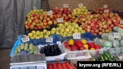 Огурцы только вот производства «Крымтеплица» да яблоки местные.