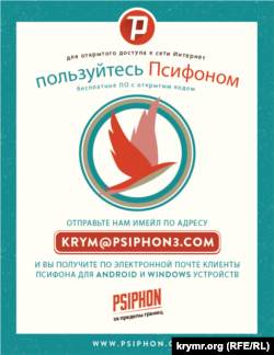 Программу Psiphon3 можно устанавливать, как на компьютеры, работающие с операционной системой Windows, так и на планшеты и смартфоны, работающие с Android. Для того, чтобы пользоваться сайтом Крым.Реалии с портативных устройств, можно отправить письмо на электронный адрес krym@psiphon3.com В ответ придет программа для установки Psiphon на смартфоне или планшете.