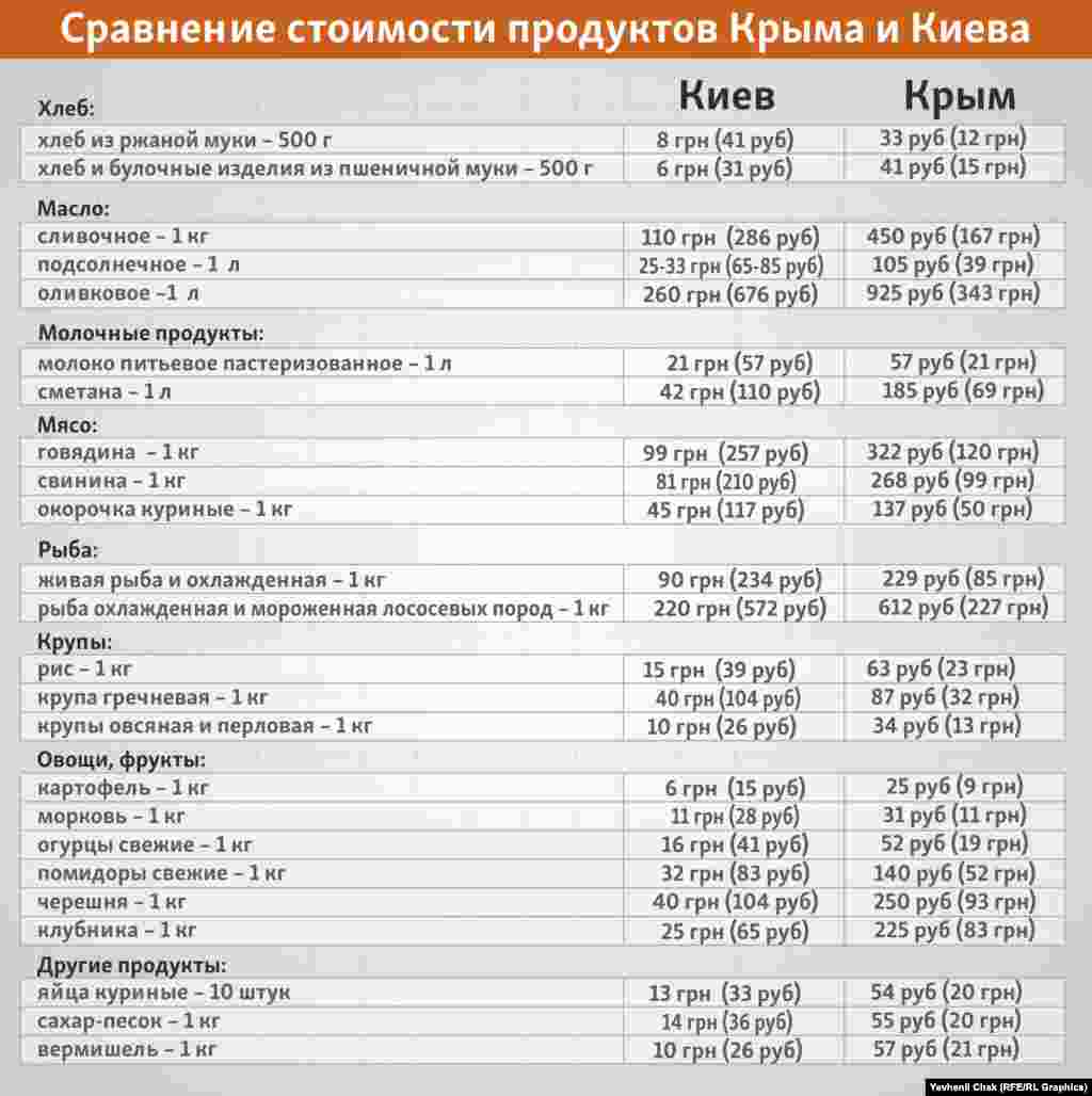 Сравнение стоимости продуктов Крыма и Киева (инфографика)