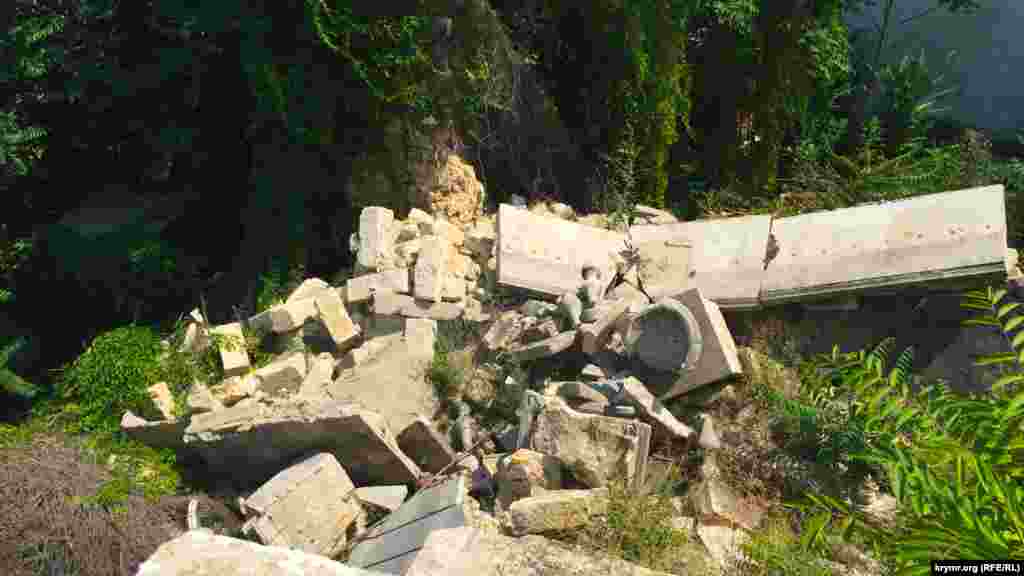 Часть лестницы оградили бетонными блоками и закрыли для посетителей