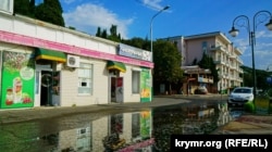 Возможно, это просто «расставалась» с накопленными за ночь дождевыми водами набережная – накануне в Алуште прошел обильный ливень.