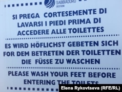 В Италии при любом пляже бесплатные души, куча всяких краников для ног, а главное – чистенькие туалеты. Я впервые увидела такое объявление: мойте ноги перед тем, как войти в это святое место общего пользования. Представляете. Мойте руки перед едой, а ноги перед туалетом. Нечего тащить туда песок. Моют, не тащат.