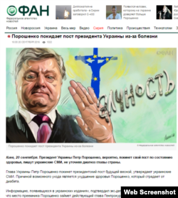 «Новость» об отставке Порошенко из-за болезни распространили News-Front, «ТВ центр», «Русская планета», Politikus.ru, «Экономика сегодня», «ИА ФАН»,«Газета Daily», «Известия» и другие.