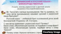 Школьники украинских школ учатся по учебникам, восхваляющим Россию и ее государственные символы. Это касается, в частности, учебников по русскому языку для третьих классов. Волонтер из Мариуполя случайно обнаружила этот факт и утверждает, что это не единичный случай, а практика по всей стране. Более того, руководство одобрено Министерством образования в июле 2014 года. Впрочем, пособие по русскому языку для учащихся 3-х классов ‒ не единственная проблема. Существуют и другие учебники, которые учат украинских детей любить государство-агрессора.