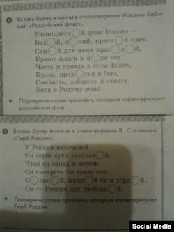 Волонтер Галина Однорог получила сообщение, в котором нашла фото задания по русскому языку для третьеклассников мариупольской школы. Текст упражнения прославлял и превозносил Россию и ее государственные символы.
