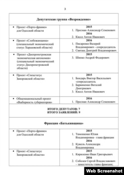 Украинские СМИ в четверг опубликовали документ из так называемого взломанного почтового ящика советника президента России Владислава Суркова. В нем, в частности, анализируют, сколько украинских депутатов поддержали различные «автономистские» проекты в 2015-2016 годах. Первый в списке ‒ «Порто-франко». А дальше: проект «спецстатуса Запорожской области», проект «Днепропетровская экономическая автономия», проект «Слобожанщина».