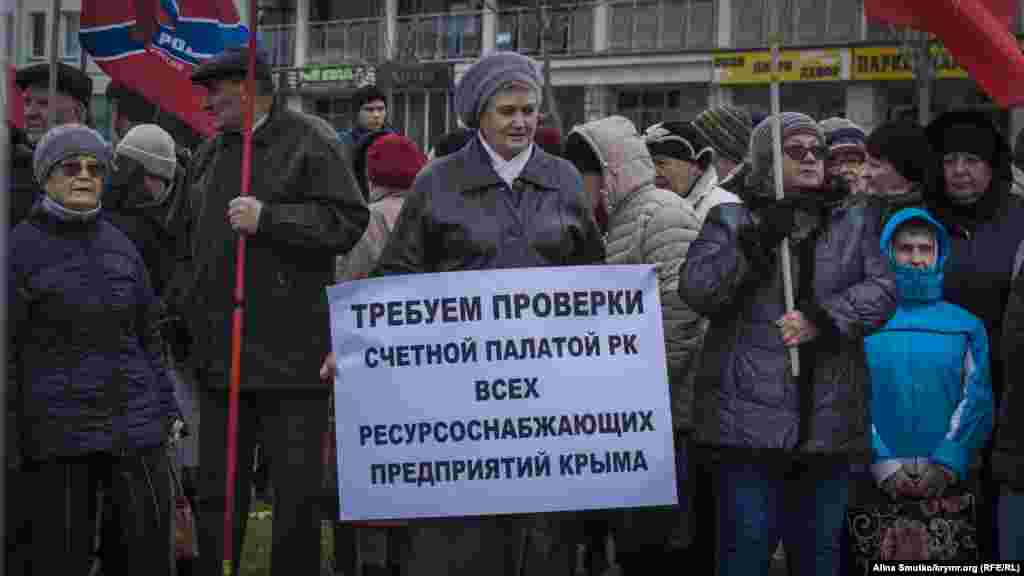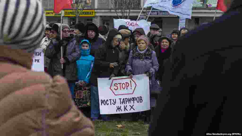 В Евпатории 10 декабря состоялся митинг против повышения тарифов ЖКХ и сбора взносов на капитальный ремонт многоэтажных домов. Организаторами выступили евпаторийские отделения российских партий КПРФ, «Родина», «Справедливость», а также «самооборона Крыма» (МРОО «ПУСК»).