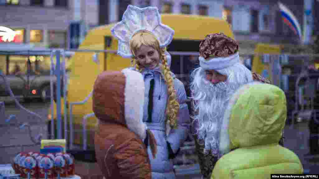 В Симферополе на площади Ленина открыли главную елку Крыма. Пришедшие на праздник дети вместе с ведущими праздника скандировали: «Раз-два-три, елочка, гори!», после чего на новогоднем дереве зажглись огни. Открытие сопроводили концертом, на котором выступали народные коллективы. Кроме елки, на главной площади города установили светящийся фонтан и карету с лошадьми.