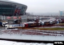 А стадион «Донбасс-Арена», тоже пострадавший от обстрела, теперь используется под склады для гуманитарной помощи от Рината Ахметова: именно сюда заходят караваны торговых фур.