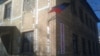 Теперь главный вход и окна заложены кирпичами, зато сам центр украшает красная надпись «С.С.С.Р.».