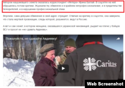Издание «Информационный центр» 2 февраля также сослалось на пост Юрия Ткачева. В материале указали, что автором «сюжета-постановки» якобы является журналистка телеканала «Интер» Ирина Баглай.