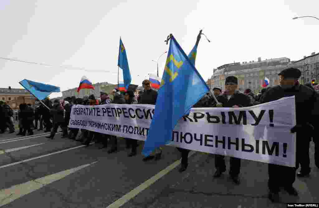 Под крымскотатарскими флагами: «Марш Бориса Немцова» в Москве (фотогалерея)