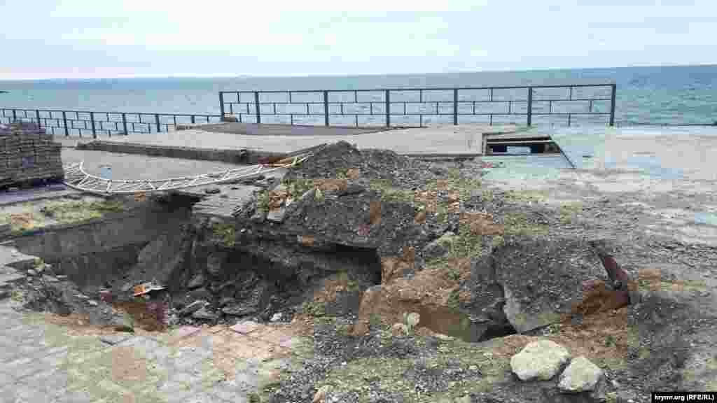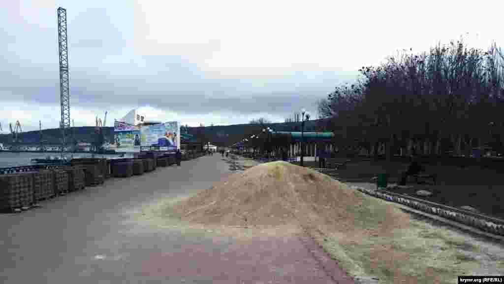 Тем временем большая часть набережной в Феодосии разрыта, а траншеи с трубами стали местом для прогулок детей