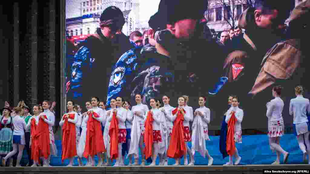 Часть выступления: артисты демонстрируют «фашистов в Крыму» во время событий 2014 года
