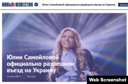Российский телеканал «РЕН-ТВ» в понедельник сообщил: «Украина приняла официальное решение об участии российской певицы Юлии Самойловой в международном конкурсе «Евровидение». Киев разрешил въезд в страну Самойловой для участия в конкурсе. Российская делегация уже получила соответствующее подтверждение в конце прошлой недели, сообщает URA.ru. Отмечается, что СБУ не стала ограничивать въезд Самойловой в страну».