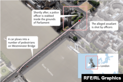 Действия человека, которого лондонская полиция описывает как, скорее всего, террориста-одиночку, привели к смерти пятерых, включая его самого, и ранению более 40 человек. Вот картина этого дня.