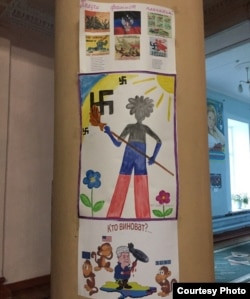 Вызывает большое сомнение то, что все те плакаты рисовали именно школьники. Наверное, как и в детсадах воспитатели, сами учителя, для сохранения рабочего места и зарплаты помогли врагу сеять вражду между людьми оккупированного Донбасса и свободной территории Украины.