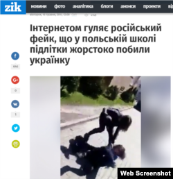 Во вторник российские, украинские и пророссийские издания распространили новость: будто бы в Польше избили украинскую школьницу. Это вроде бы произошло возле одной из школ польского Гданьска. Так, например сайт украинского канала ZIK вышел с заголовком: «В польской школе толпа подростков жестоко избила украинку». СМИ сослались на Facebook-страницу Марики Питлевской, которая выложила видео избиения в открытый доступ.