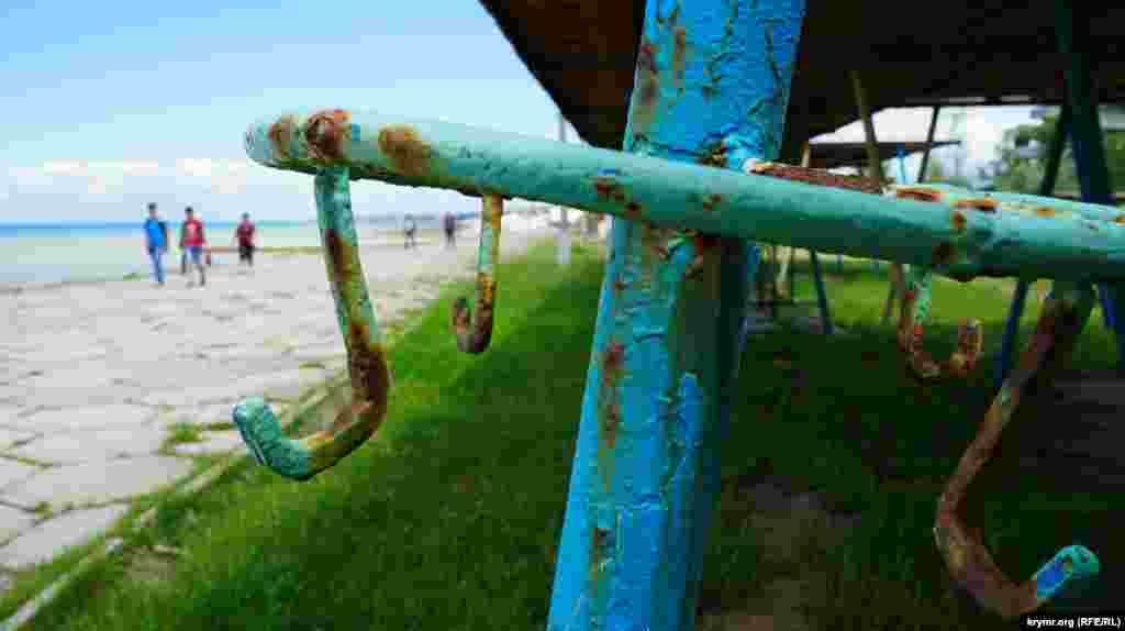 Единственная отдыхающая, москвичка, с двумя детьми на муниципальном пляже Песчаного