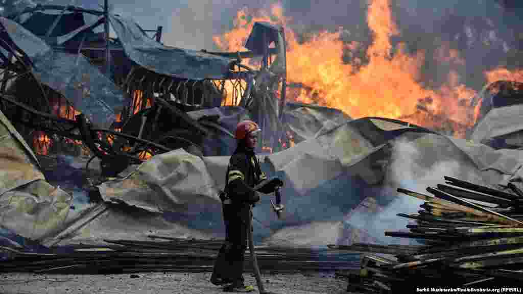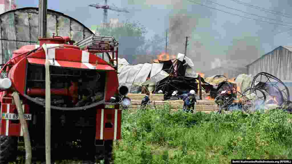 В Броварах под Киевом 5 июня загорелись склады с пиломатериалами на территории бывшей оптовой базы. По данным пресс-службы ГСЧС, горели два отдельно стоящие складские помещения на территории около 1500 квадратных метров. Жертв и пострадавших нет. Пожар тушили 40 человек личного состава с помощью 10 единиц техники.
