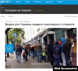 На сайте «Вести.ру» в сюжете канала «Россия-24» говорится о безвизовом режиме Украины и ЕС и беженцах с Ближнего Востока.